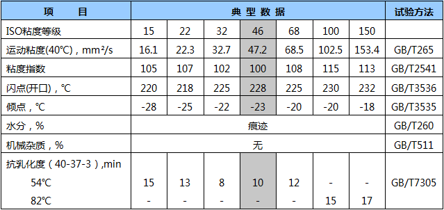 ● 優(yōu)良的粘溫性能,保證液壓元件在工作壓力和溫度發(fā)生變化的情況下得到良好潤(rùn)滑、冷