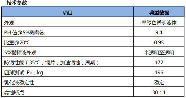 l 特別適用于那些多數乳化油會有乳化穩定性麻煩的高水硬度和礦物油含量的場 合。可以根據操作的難度調整乳液的濃度,在大多數情況下,推薦的稀釋度為20 :1 。