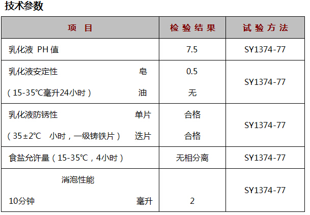 性能特點 ● 優良的防銹性、乳化性、清洗性和冷卻性 。 ● 可使刀具和工件表面迅速冷卻,提高加工速度。