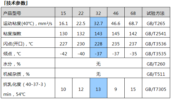● 卓越的抗乳化性、抗泡性、空氣釋放性和過濾性,保證系統動力傳遞準確,優異的抗剪切性