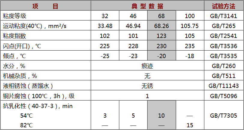 ● 優良的抗泡性和空氣釋放性,保證液壓系統工作靈敏、準確、平穩;